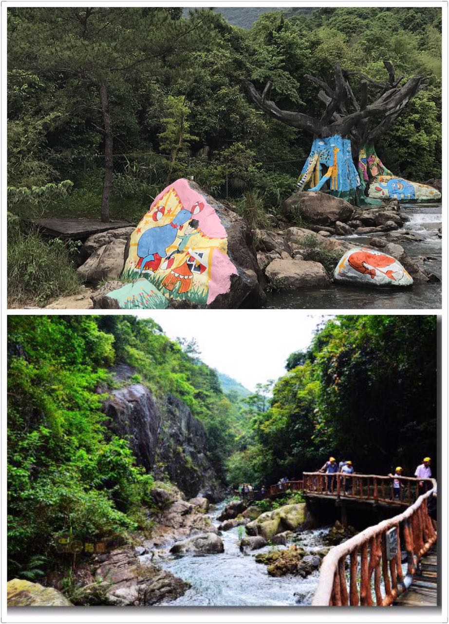 拾級而上(shàng),起初還(hái)不算(suàn)太難走,上(shàng)幾階又有(yǒu)一個(gè)緩沖帶。我們在瀑布下的親水(shuǐ)步道(dào)上(shàng)悠遊漫步,這是接近自然接近仙瀑的更輕松方式。看介紹說親水(shuǐ)步道(dào)的入口與“天南第一梯"的第2 9 9級相接,通(tōng)至第1 2 9 9級的觀瀑台,全長6 6 6米,是一條天然的木棧道(dào)。走在上(shàng)面,遊人(rén)可(kě)以一邊眺望白水(shuǐ)仙瀑的翩翩美态,一邊前行(xíng),任潺潺的流水(shuǐ)有(yǒu)如活潑歡快的音(yīn)符般在腳下跳(tiào)躍奔流。
