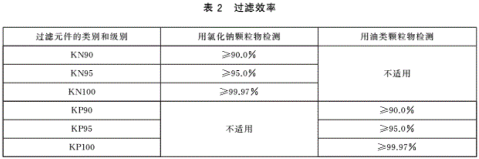 國标《GB2626-2016呼吸防護用品自吸過濾式防顆粒物呼吸器(qì)》根據口罩的洩漏率與口罩本身的過濾效率将口罩分為(wèi)90(KN90、KP90)、95(KN95、KP95)、100(KN100、KP100)三個(gè)等級,分别如下: