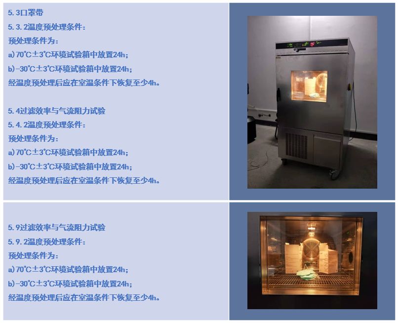 KN95口罩質量标準參照《GB19083-2010 醫(yī)用防護口罩技(jì)術(shù)要求》,其中口罩帶、過濾效率與氣流阻力試驗、阻燃性能測試需要使用環境試驗箱: