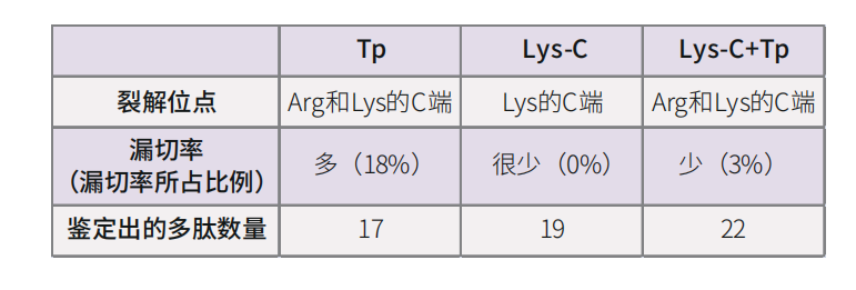 表1:Tp、Lys-C 和(hé) Lys-C+Tp的結果對照