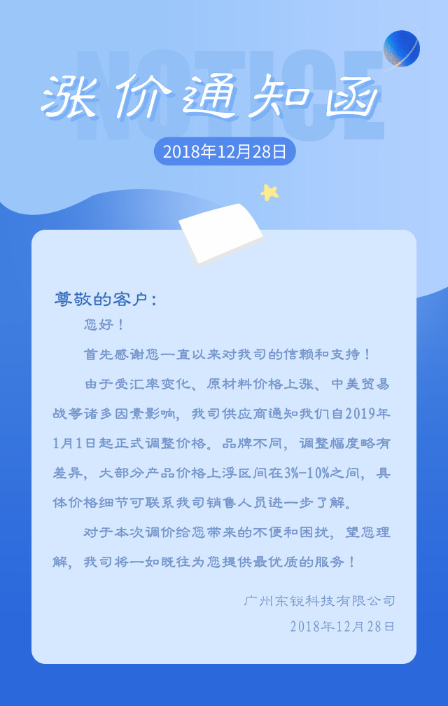 必看!2019年漲價通(tōng)知函!
