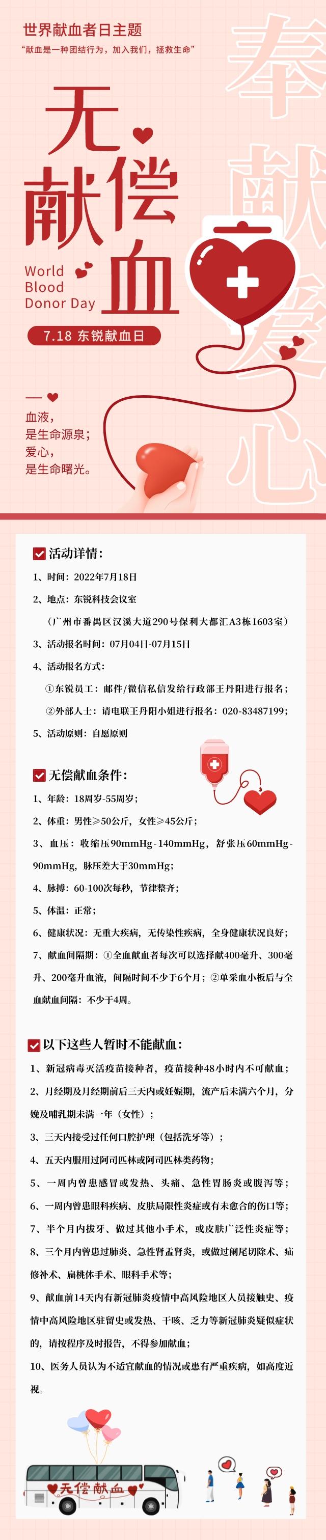 今年我們同樣為(wèi)進一步普及獻血知識,讓更多(duō)人(rén)理(lǐ)解、關心和(hé)支持無償獻血事業,将于2022年7月18日東銳會(huì)議室舉行(xíng)無償獻血活動