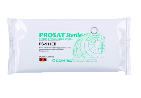 PROSAT®預濕無菌PS-911EB由70%異丙醇和(hé)30%去離子水(shuǐ)經熔噴聚丙烯法制(zhì)成,且經伽馬射線輻照。适合清潔手套和(hé)表
