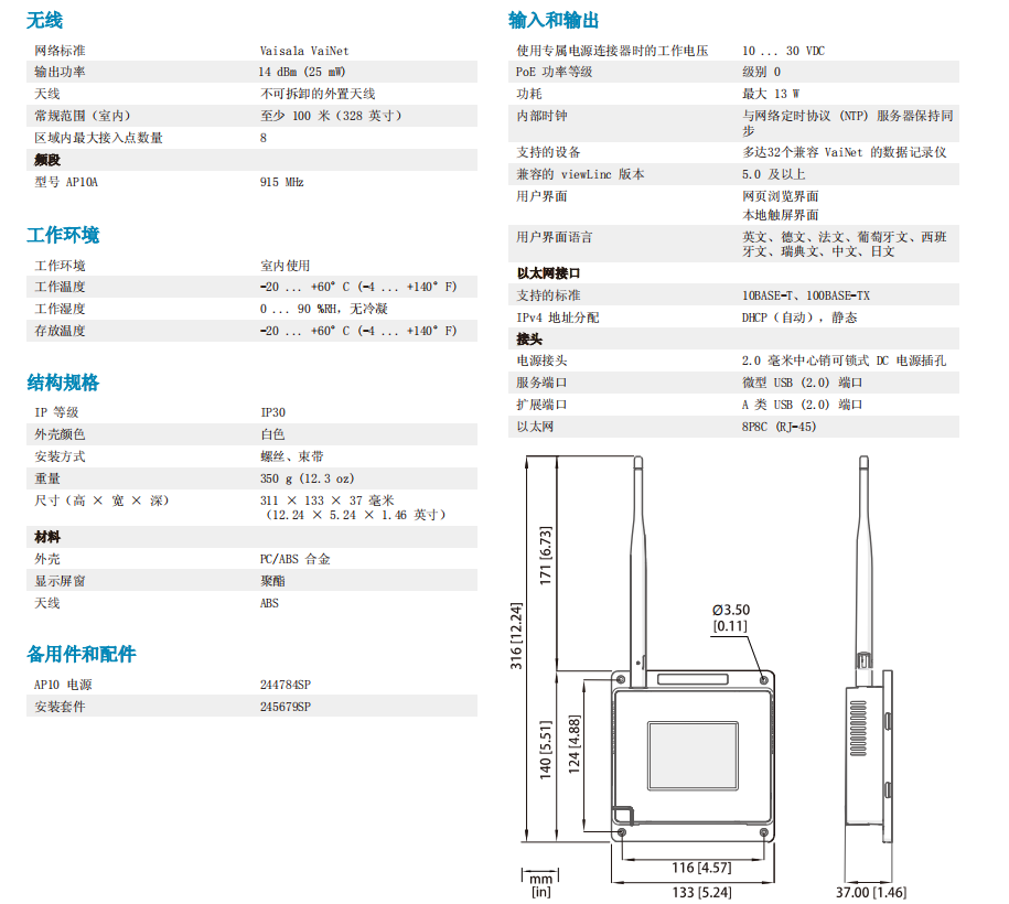 VaiNet 無線連接點 AP10 是一款無線網路硬件設備,針對維薩拉的專有(yǒu)無線技(jì)術(shù):VaiNet。AP10 最多(duō)可(kě)将 32 個(gè) VaiNet 無線數(shù)據記錄器(qì)(例如,RFL100)連接到維薩拉的監測系統軟件:viewLinc  企業服務器(qì)。
