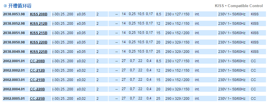 經濟型恒溫水(shuǐ)浴/油浴KISS系列和(hé)CC系列,采用透明(míng)的聚碳酸酯水(shuǐ)浴槽 (最高(gāo)工作(zuò)溫度達+100°C),采用不鏽鋼材質的水(shuǐ)浴槽(最高(gāo)工作(zuò)溫度達 +200°C)。浴槽填充體(tǐ)積範圍從6到25升。具有(yǒu)高(gāo)溫穩定性,過溫保護和(hé)低(dī)液位保護,安全等級符合3級/FL可(kě)使用可(kě)燃性液體(tǐ),符合DIN 12876标準。 強有(yǒu)力的循環泵可(kě)以保證浴槽內(nèi)最佳的溫度穩定性,泵接合器(qì)(配件)用于外循環控溫。