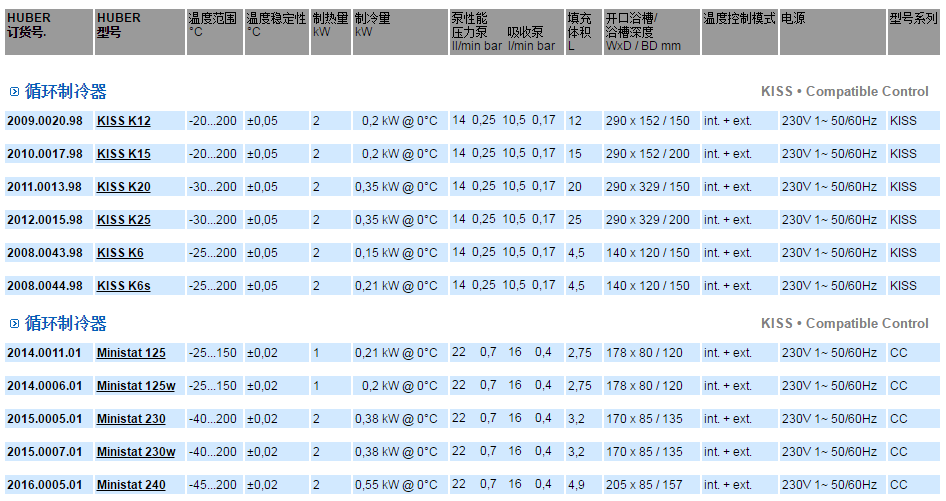 Huber循環制(zhì)冷器(qì)是典型的具有(yǒu)加熱功能的冷卻循環器(qì),适用于實驗室,安全可(kě)靠,确保實驗室結果重複性。工作(zuò)溫度範圍從-90 到 200°C, 有(yǒu)水(shuǐ)冷型或者風冷型制(zhì)冷器(qì),根據需要使用環保型天然制(zhì)冷劑。其中,Ministats系列是世界上(shàng)最小(xiǎo)的冷凍循環油浴。結構緊湊,占地面積小(xiǎo),可(kě)置于實驗室的通(tōng)風櫥中或設備內(nèi)部使用。